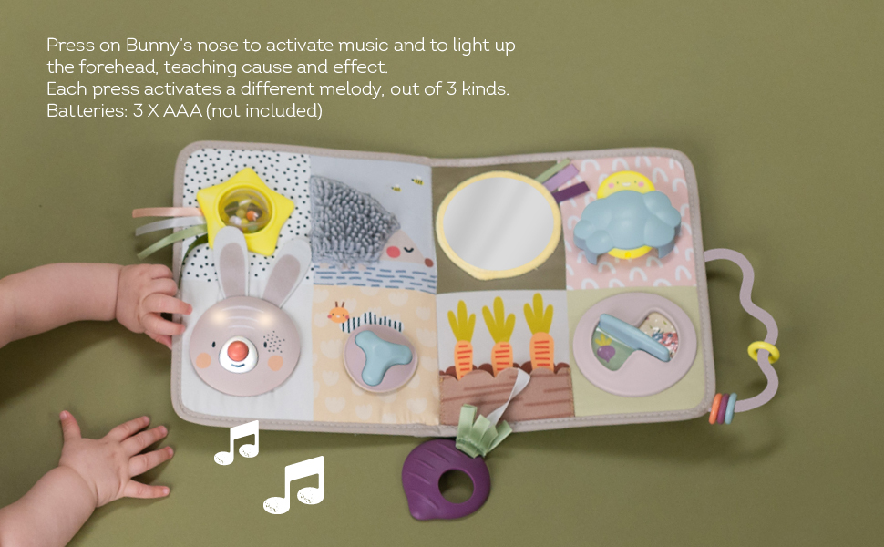 + Giai đoạn 2: 3M+ – Thời gian nằm sấp – Nhiều tính năng để chơi và khám phá để bé có thể vui chơi lâu dài khi nằm sấp. Cuốn sách cũng có thể đứng riêng để giúp khuyến khích trẻ chơi đùa trong lúc nằm sấp.